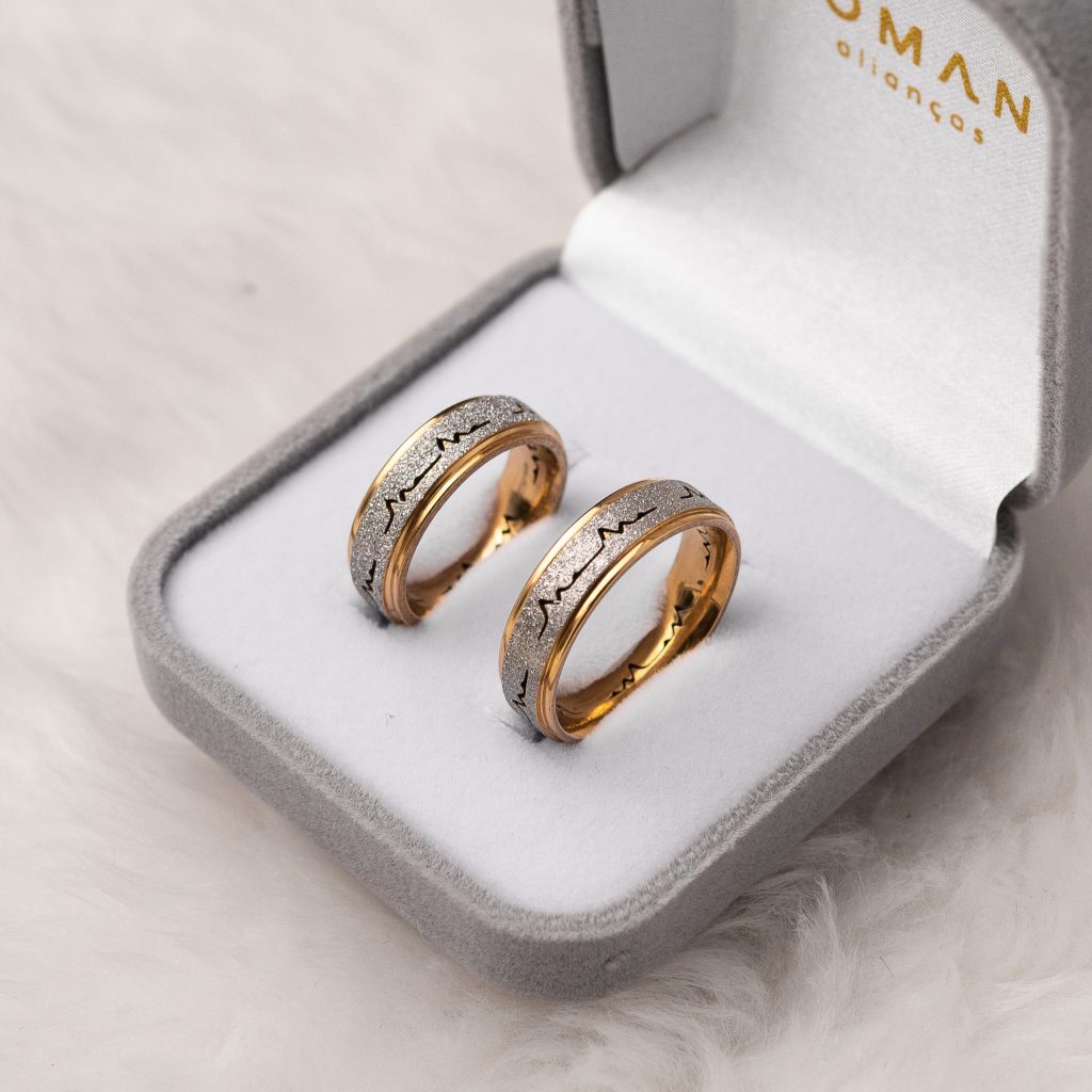 As alianças com texturas, como ranhuras ou designs em relevo, representam a jornada da vida a dois, cheia de altos e baixos, mas sempre juntas. A Romani disponibiliza várias opções texturizadas, que oferecem um visual moderno e ao mesmo tempo clássico, perfeito para casais que apreciam detalhes únicos.